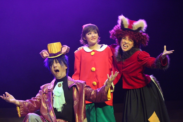 左に両手を広げ、右に左手を広げ右手はピノキオに肩を組んだ壊そうな2人の間に悲しそうなピノキオの写真 拡大画像 (JPEG: 145.0KB)