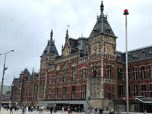 右側に白い建物、左側に茶色の高い建物が建っていて、前の広場に沢山の人達が歩いている写真 拡大画像 (JPEG: 99.8KB)