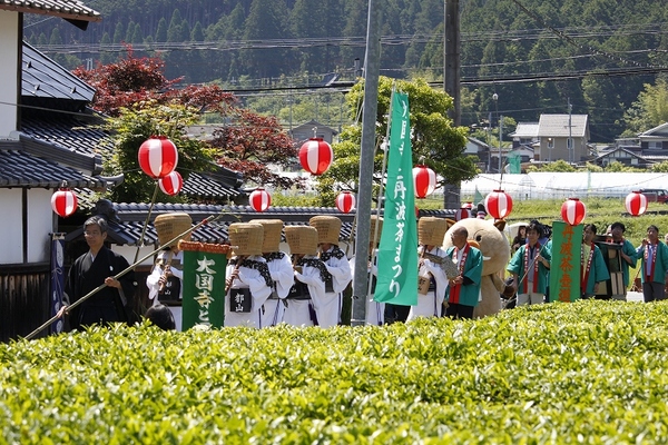 大国寺、茶つぼ道中、茶摘みに手揉み体験、お茶席、舞台でのパフォーマンス、そしてフィナーレは薬師の餅まきなど、大いに盛りあがりました。