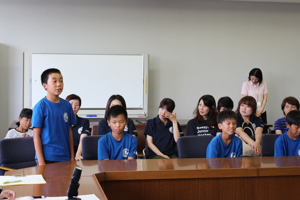 選手と父兄が椅子に座り、市長が立って話をしている写真 拡大画像 (JPEG: 118.6KB)