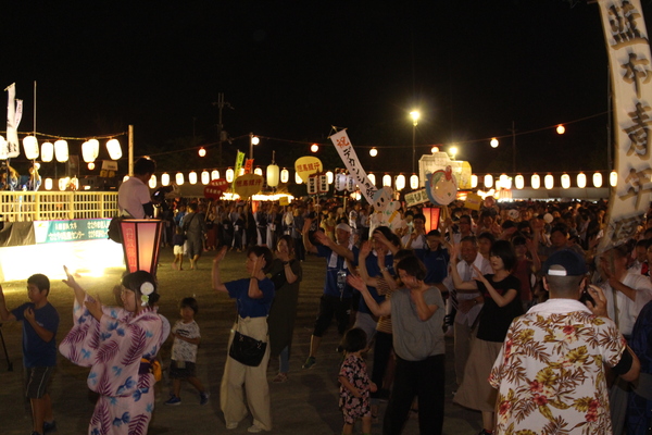 浴衣や、私服、老若男女問わず踊っている写真 拡大画像 (JPEG: 155.6KB)