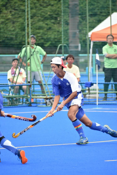 帽子をかぶった一名の選手がホッケーのスティックを持って、ボールを追いかけている写真 拡大画像 (PNG: 393.7KB)