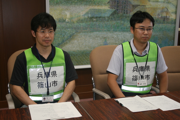 石原主査は、これまで個人として東北や倉敷市でボランティア活動を行うなど、被災地支援に強い思いを持ってくれています。藤原主査は、災害支援は初めてとのことですが、7月豪雨で本市の避難所を担当したことから「他人ごとではない」との思いを持って志願してくれました。
