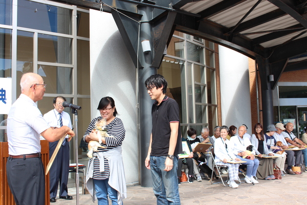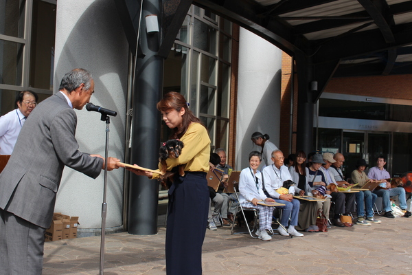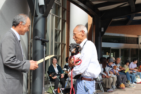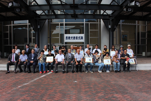 9月20日から26日まで動物愛護週間ですが、摂丹獣医師会と篠山市とで、満17才を迎えた長寿の犬と飼い主の皆様を表彰し、お祝いしました。
