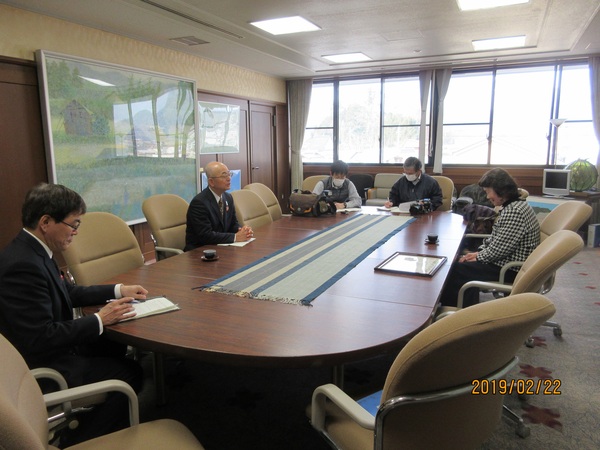 応接室のテーブルに市長と、園田さんが向かい合わせに座って話をしている写真 拡大画像 (JPEG: 88.8KB)