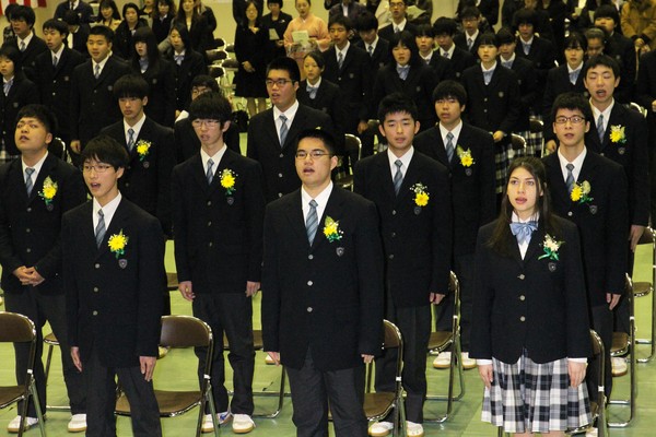 篠山東雲高校の卒業式で卒業生たちが、立って発言している写真 拡大画像 (JPEG: 77.4KB)