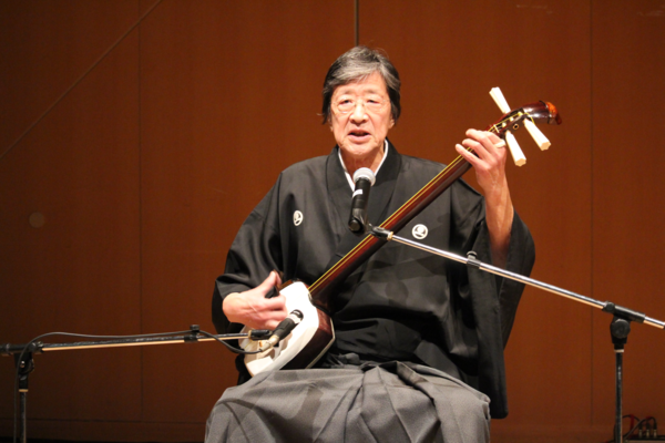 男性が歌いながら三味線を弾いている写真 拡大画像 (PNG: 366.1KB)