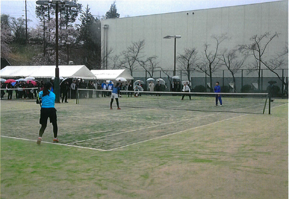 3月30日にはこれを記念して、テニス教室が開催され、ソフトテニスで日本代表として活躍されてきた森原 可奈選手、深澤 昭恵選手(いずれも東芝姫路、ミズノアドバイザー)にお越し頂きました。これまでに篠山市には相撲の白鵬関、サッカーの北澤選手にお越し頂いたことがありますが、これに並ぶ、特に私には嬉しい豪華ゲストです。