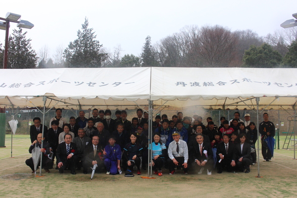 テントの中に沢山の人が入り綺麗に並んで市長と一緒に記念写真 拡大画像 (JPEG: 154.4KB)
