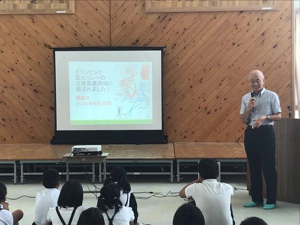 後ろでスクリーンに映しながら市長が子供達に向かって説明している写真 拡大画像 (JPEG: 81.0KB)