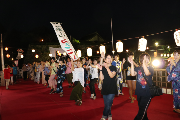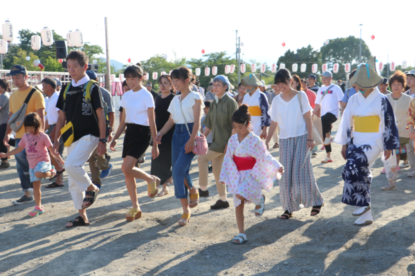浴衣を着た参加者たちが楽しそうに踊っている写真 拡大画像 (PNG: 398.0KB)