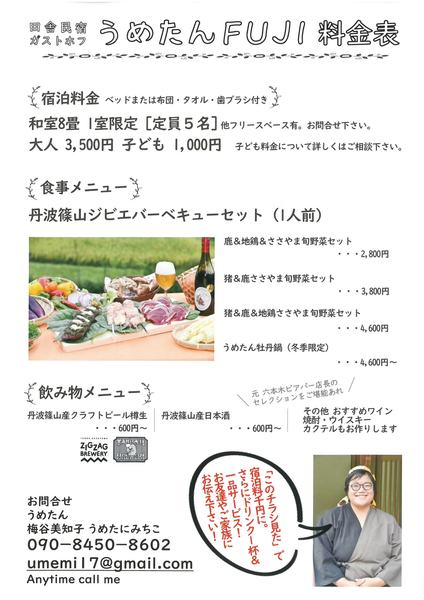 田舎民宿うめたんのオープンを知らせる告知のチラシ 拡大画像 (JPEG: 61.5KB)