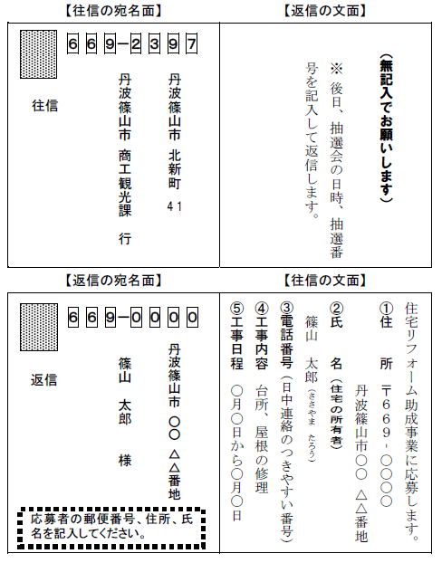 ※返信表面にはご自身の住所・氏名を記載してください。返信裏面には何も書かないでください。